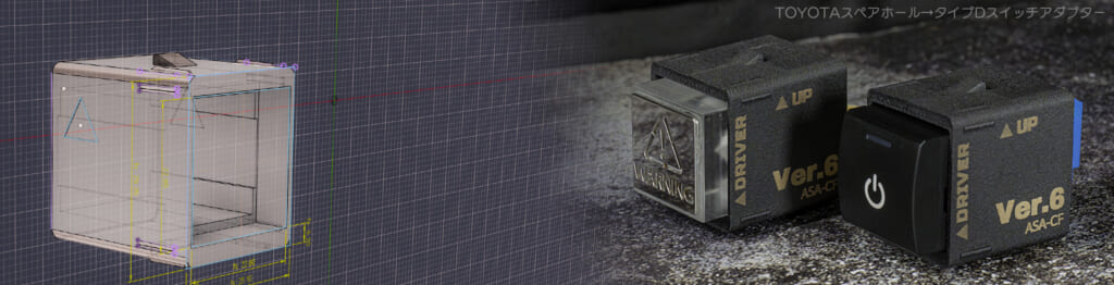 - 特定車種のスペアホールスロットに市販のスイッチや充電器を固定するためのサイズ変換アダプタ