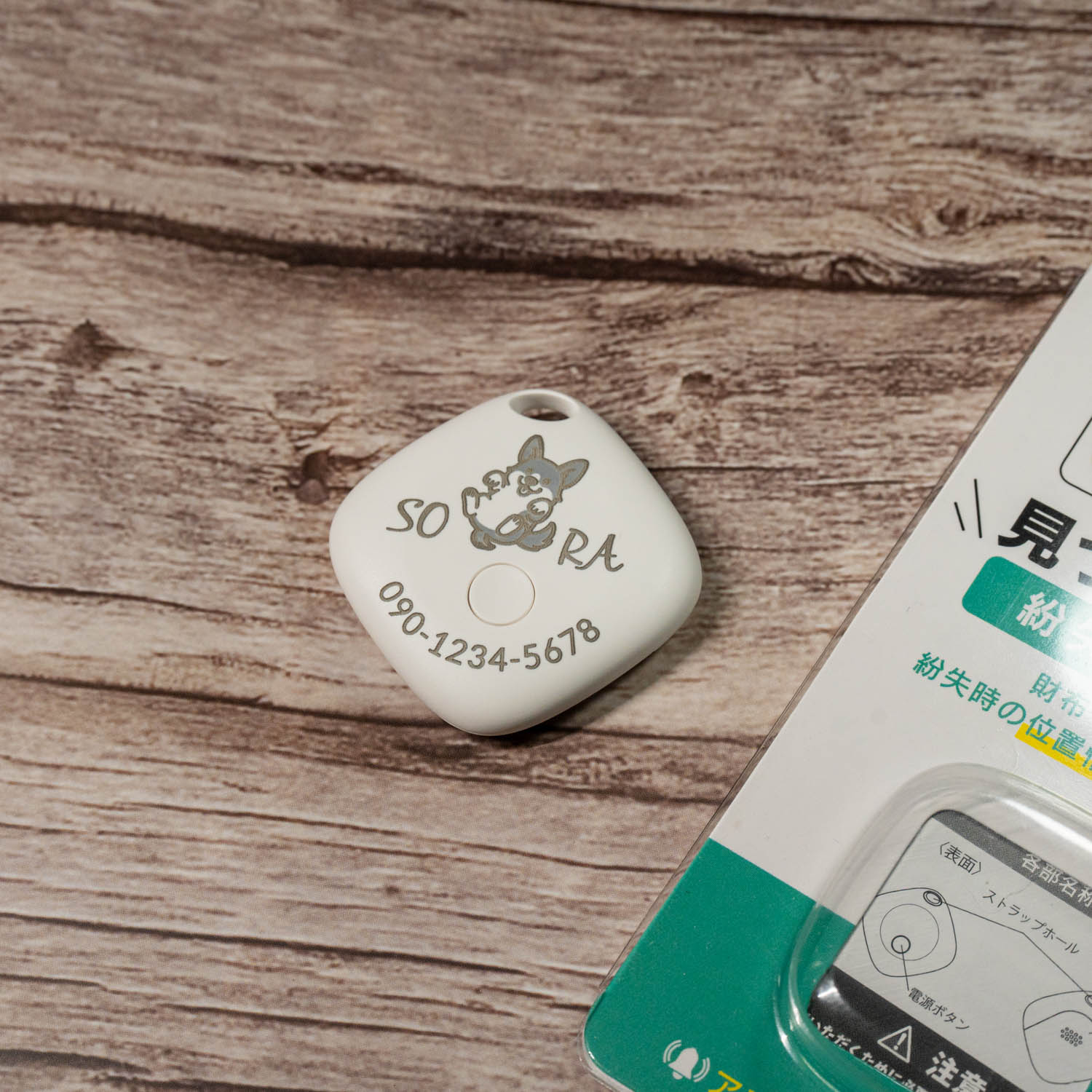 DAISO紛失防止タグは純正AirTagのようなNFCタグを搭載しておらず、拾得者がスマホをタッチさせても連絡先やメッセージを表示する機能がありません。かわりに本サービスで連絡先電話番号、メールアドレスをレーザー刻印してはいかがでしょう?イラストなども刻印可能です。