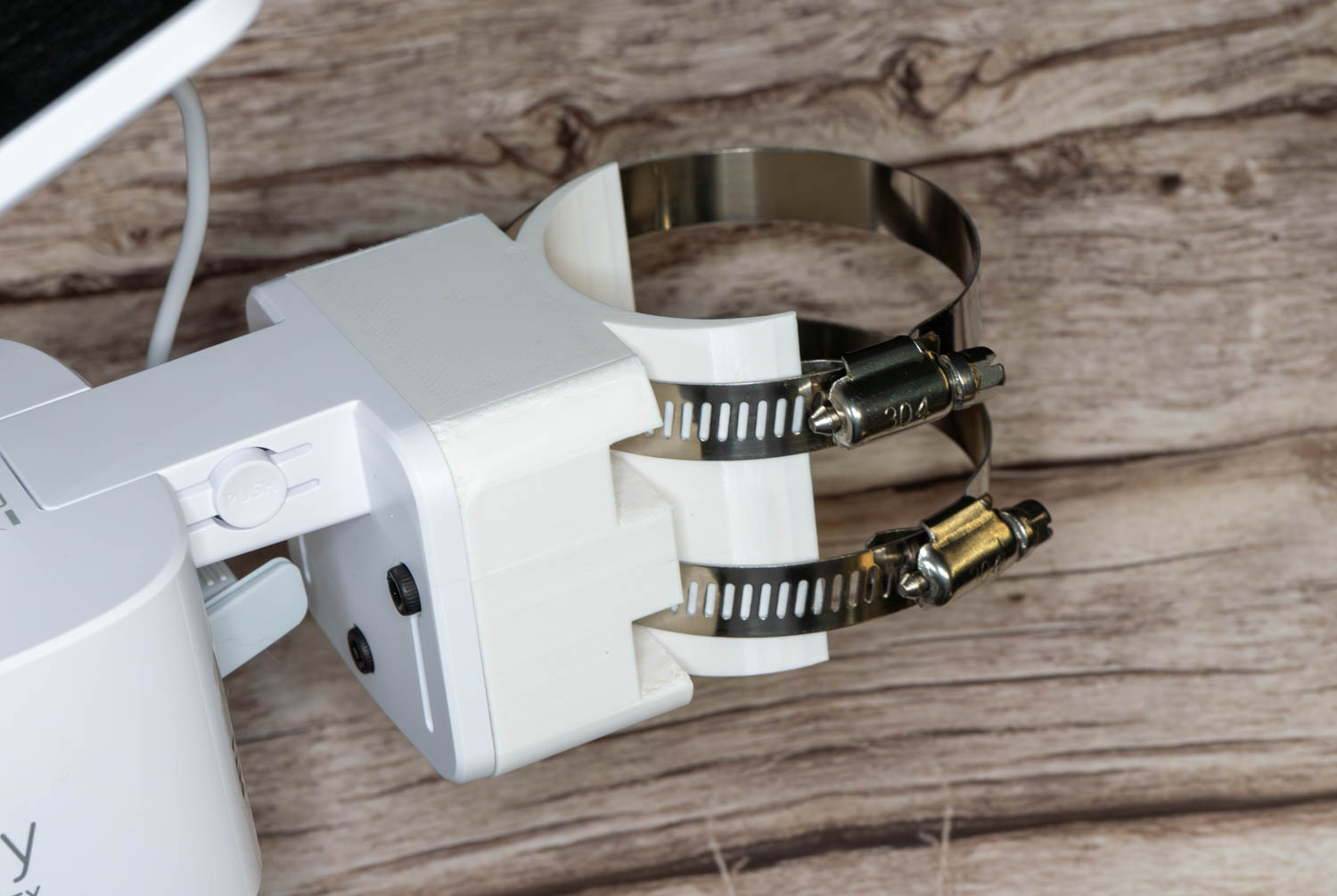 Anker(Eufyブランド)の屋外用セキュリティカメラ SoloCam S340を、雨樋など円柱状のものに取り付けるマウントブラケットです。