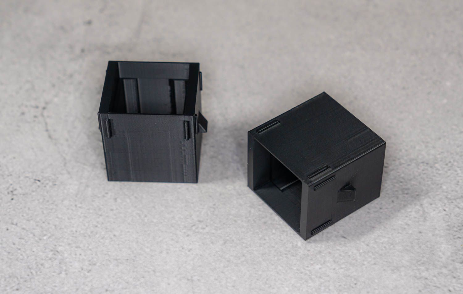3Dプリンターによる造形品です。 車内使用を鑑みて耐熱性が120℃までといわれるASA-CFという材料で造形しています。